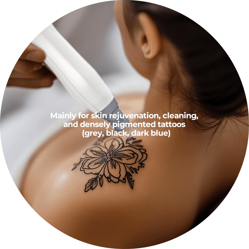 ·Comprehensive Treatment Coverage: Effectively treats pigmentation, tattoos, acne, skin rejuvenation, and a wide range of other dermatological concerns, making it highly versatile in clinical applications.